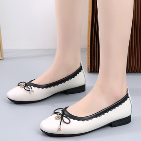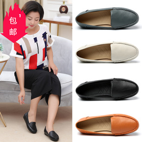 新款春季妈妈鞋真皮平跟豆豆鞋平底单鞋中老年休闲女皮...