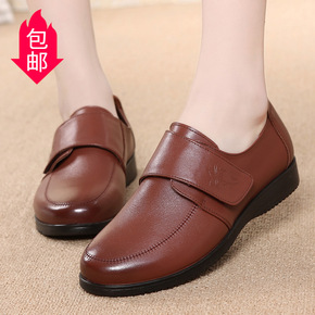 妈妈鞋春秋防滑平底真皮中年女鞋牛皮鞋中老年加绒棉鞋...