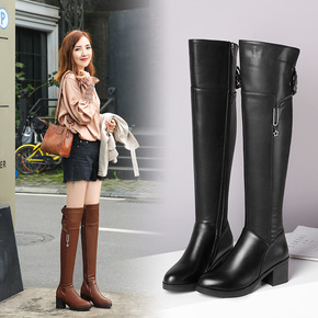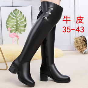 女式皮靴真皮过膝靴女中跟加绒加厚粗跟大码中年妈妈棉...