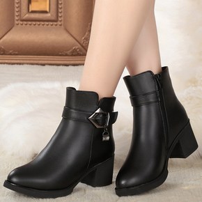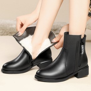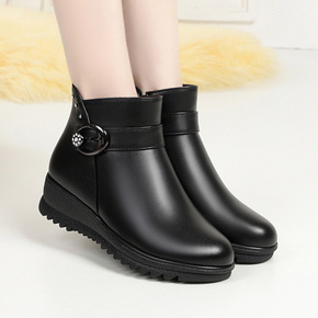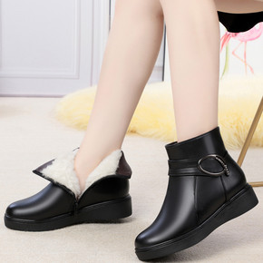 妈妈棉鞋女冬羊毛短靴女式皮靴中跟加绒粗跟棉皮鞋大码...
