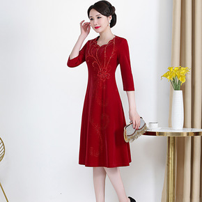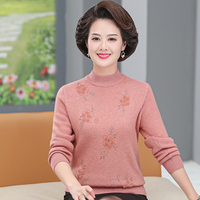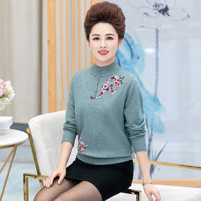中老年女秋冬洋气长袖中领针织上衣2021年新款40...