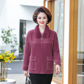 妈妈款秋冬装洋气水貂绒外套中年新款大衣中老年女装短...