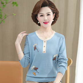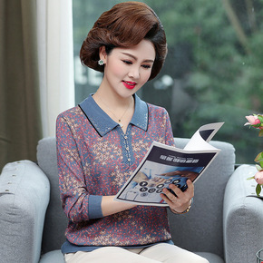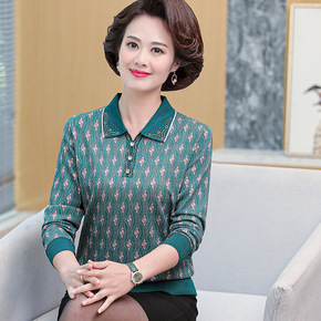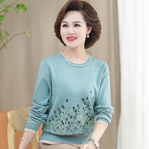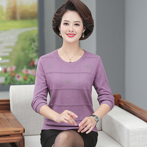 中年妈妈洋气针织上衣服中老年气质长袖打底衫女春秋2...