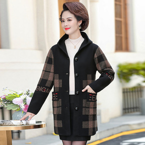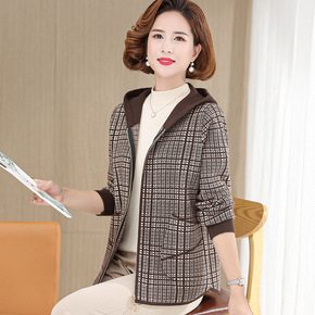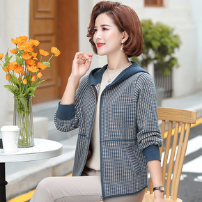 气质妈妈秋装新款格子外套连帽上衣40岁50中老年女...