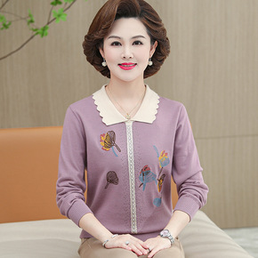 中年妈妈春装大码针织衫上衣50岁妈妈秋装新款洋气遮...