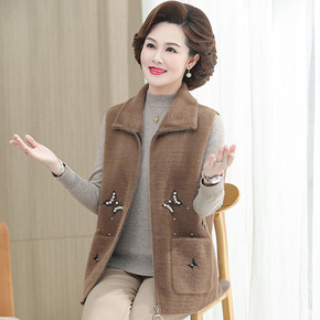 仿水貂绒针织马甲秋冬开衫外套女宽松妈妈装毛衣马夹坎...