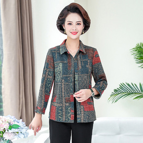 中老年人秋外套洋气2021新款上衣宽松中年妇女妈妈...
