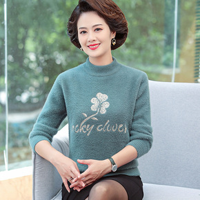 妈妈水貂绒毛衣女秋冬装50岁洋气套头加厚打底衫中年...