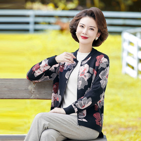 中年妈妈秋装短外套50岁妇女秋冬夹克洋气上衣中老年...