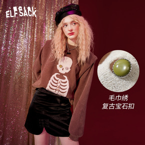 【商场同款】妖精的口袋复古亮丝针织卫衣女2021春...