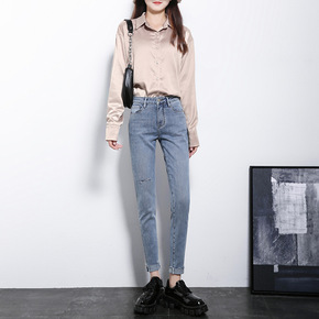 【新款】妖精的口袋亮片黑色牛仔裤女2021春季九分...
