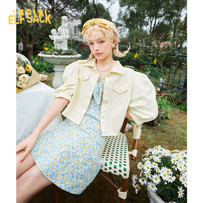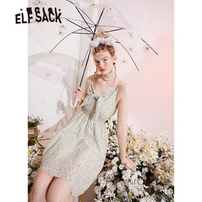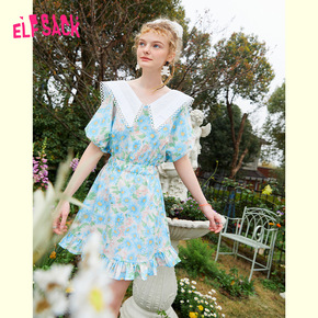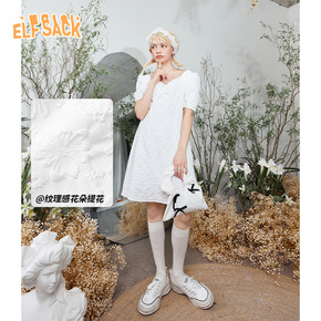 【新款】妖精的口袋法式蝴蝶结方领连衣裙女2021夏...