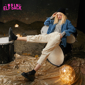 【新款】妖精的口袋灯芯绒宽松工装裤女2021春季九...