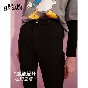 妖精的口袋人间芭比裤黑色弹力裤女2021春新款修身...