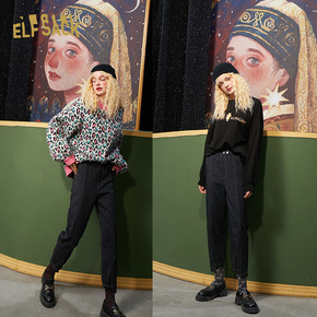 【插画师毛婷】妖精的口袋黑色复古圆领宽松卫衣女20...