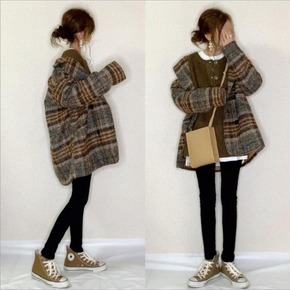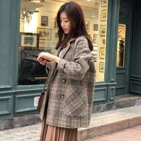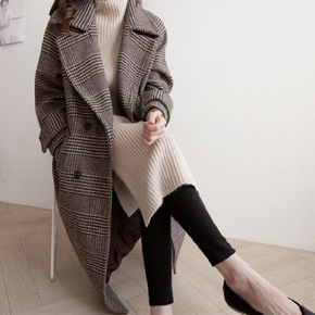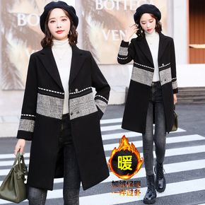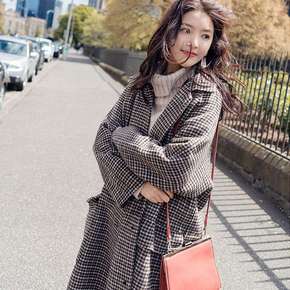 【加棉/不加棉可选】秋冬季韩版中长款千鸟格大码毛呢...