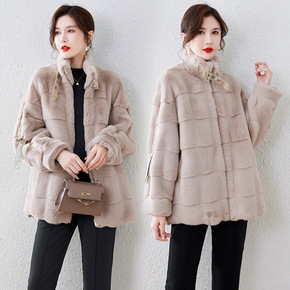 中长款水貂绒皮草外套女2021冬装高端时尚皮毛一体...