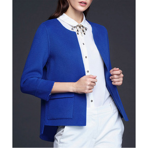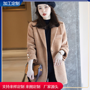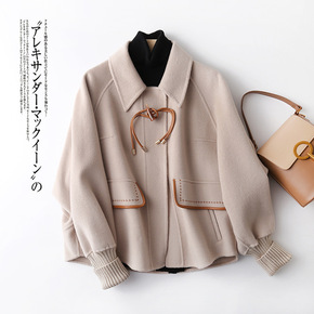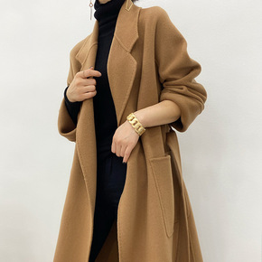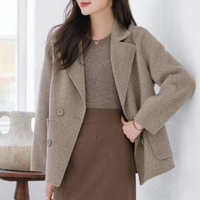 秋冬新款纯手工中长款双面呢外套小个子西装领毛呢宽松...