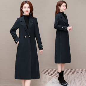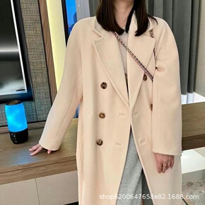 2021年新款羊毛中长款双领羊绒大衣单排扣呢子大衣...