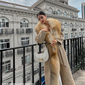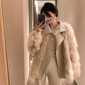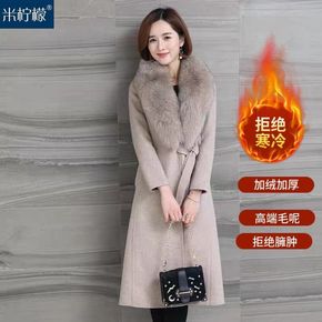 2021冬新款仿狐狸毛羊绒双面呢大衣年轻款显瘦中长...