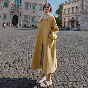 YE 2021冬季新款时尚气质双排扣双面呢毛呢大衣...