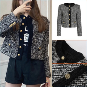 实拍反季黑色毛呢外套女中长款韩版秋冬新款西装领小个...