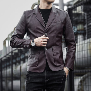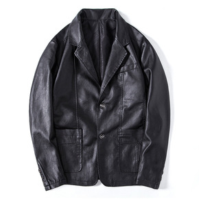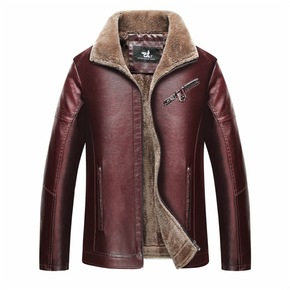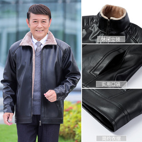 外贸尾货剪标中年男皮衣薄款中老年皮夹克休闲爸爸装皮...