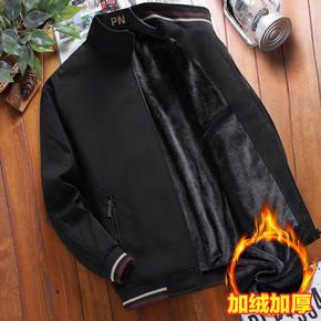 男士夹克薄款2021秋季加绒加厚中老年爸爸装立领宽...