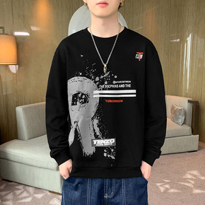 圆领卫衣男士秋冬季宽松大码纯色休闲上衣加绒百搭打底...