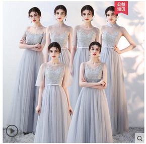 伴娘服冬季2020新款长款灰色伴娘礼服修身姐妹团婚...