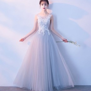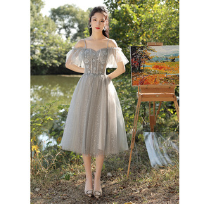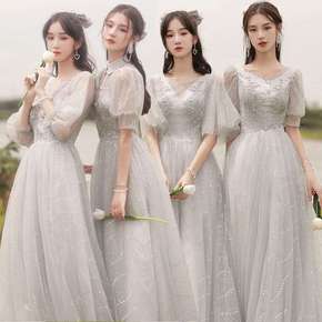 灰色伴娘服秋冬季2021新款仙气质闺蜜姐妹团晚礼服...