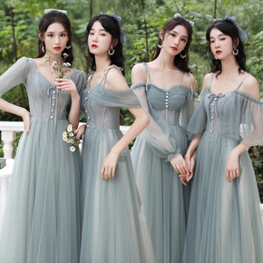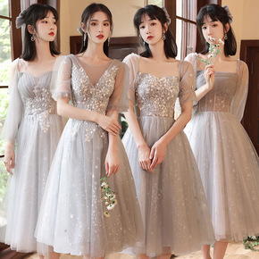 伴娘服2021新款夏季仙气质中长款灰色姐妹裙闺蜜团...