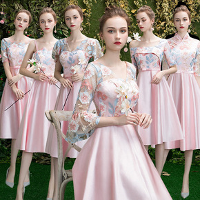 伴娘服2020新款春夏姐妹团连衣裙短款韩版粉色生日...