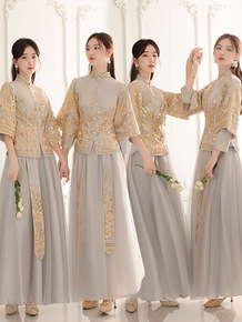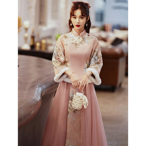 秋冬伴娘服香槟色伴娘服冬季中式旗袍2021新款秋季...