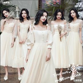 秋冬伴娘服伴娘服女2021新款春姐妹团显瘦气质香槟...