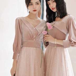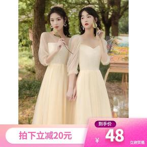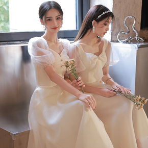 伴娘服2021新款秋季长款仙气质显瘦小众姐妹团礼服...