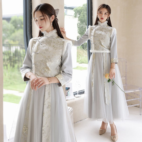 秋冬伴娘服灰色伴娘服女2021新款秋季长款显瘦遮肉...