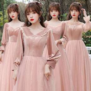 秋冬伴娘服伴娘服秋季2021新款粉色丝绒伴娘团姐妹...