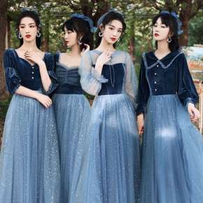 秋冬伴娘服伴娘服2021新款秋冬季星空气质姐妹团礼...