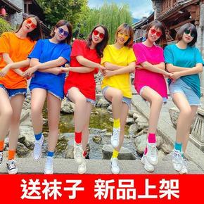 姐妹团衣服彩色恤女闺蜜装糖果色半袖伴娘服宽松团体聚...