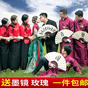 中式结婚礼服伴郎伴娘服男士长衫长袍大褂民国古装相声...