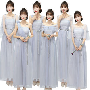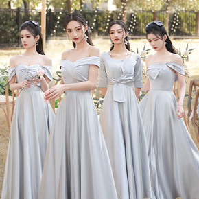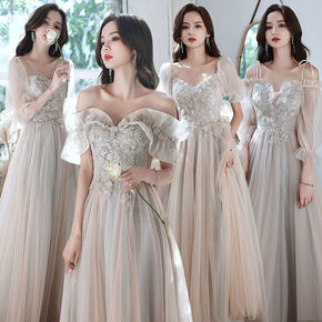 灰色伴娘服2022新款夏季气质婚礼姐妹团礼服裙女小...