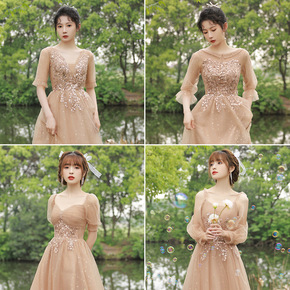 香槟伴娘服长款2021年新款夏季姐妹团主持人礼服女...