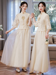 伴娘服仙香槟色新款夏季遮手臂姐妹团礼服裙女中长款...