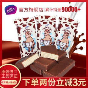 【代餐饱腹】 俄罗斯进口大奶牛威化饼干巧克力能量棒...