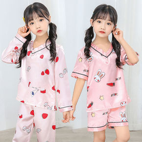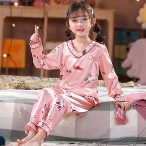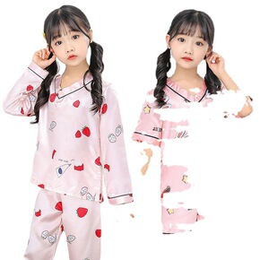东南亚儿童睡衣春季冰丝卡通女童长袖仿真丝绸男童开衫...