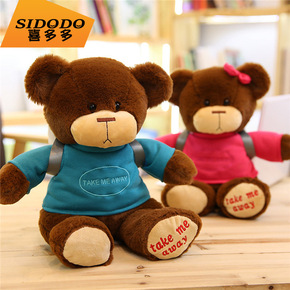 新款情侣熊毛绒玩具可爱背包穿衣泰迪抱抱熊公仔压床娃...
