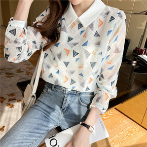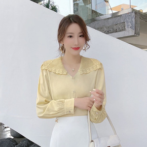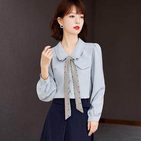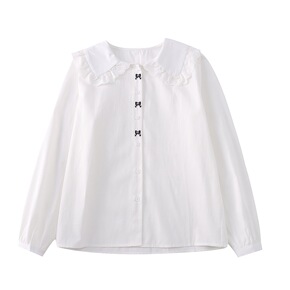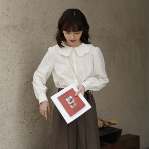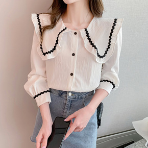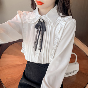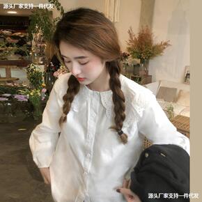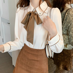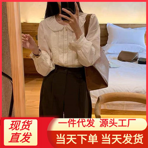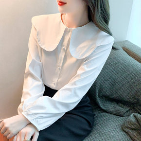 娃娃领衬衫2021秋季韩版气质娃娃领白衬衫学生休闲...