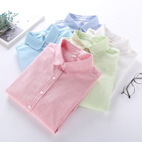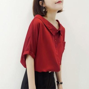 衬衫女外套女韩版宽松学生春秋上衣衬衫女娃娃领衬衫中...