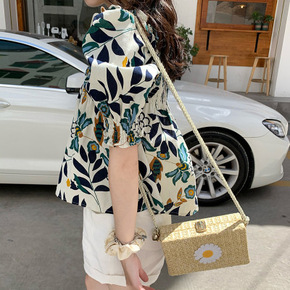 短款衬衫女设计感小众方领碎花上衣小个子春夏季短袖娃...